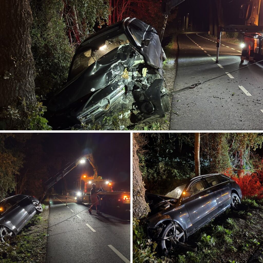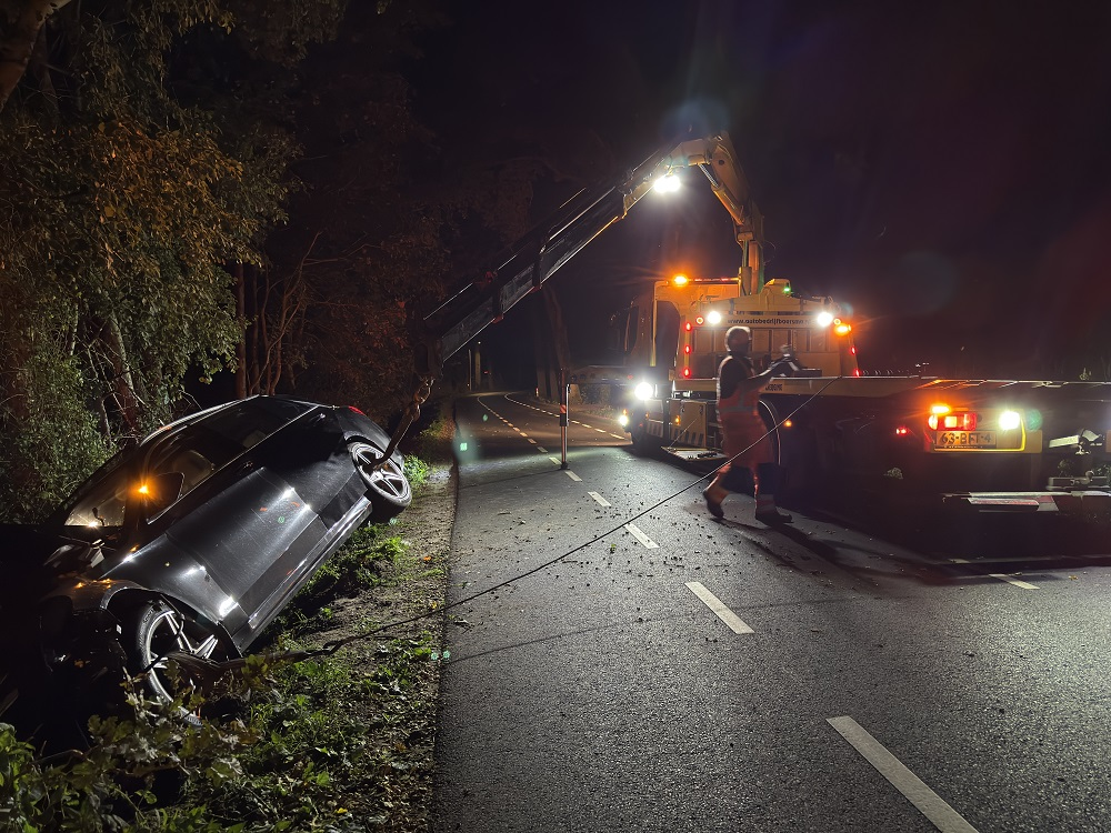 Agenten reden mee naar het ziekenhuis, omdat de bestuurder vermoedelijk onder invloed was. De auto liep flinke schade op en is door een berger afgevoerd.