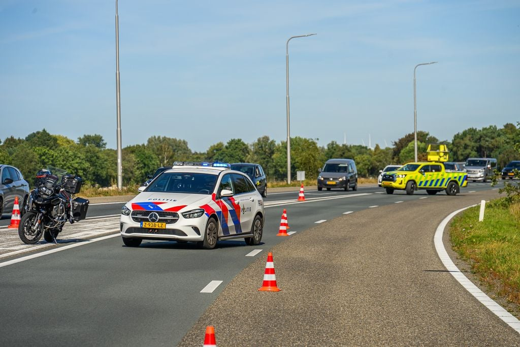 Ravage op N214, brokstukken op de weg en auto in weiland