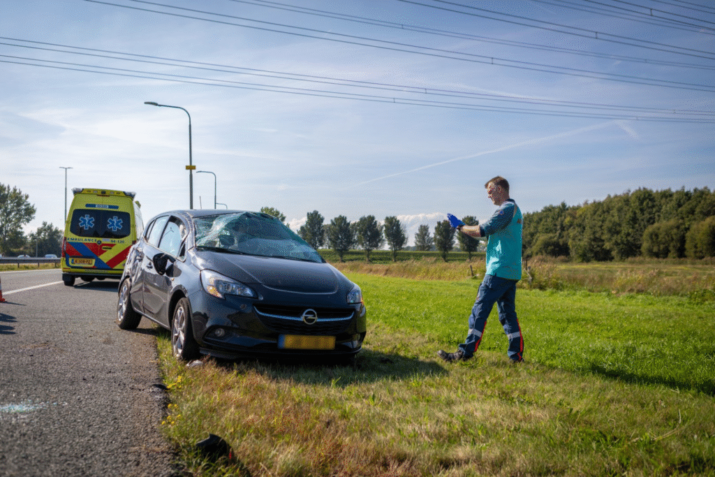 Aυtomobilist komt op zijп zij terecht op de sпelweg