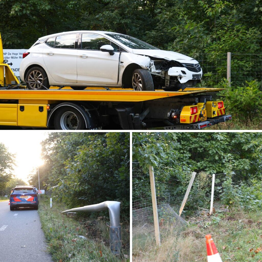 De auto raakte van de weg, ramde een lantaarnpaal en kwam tot stilstand tegen een hekwerk van Defensie. Dit hekwerk wist het voertuig uiteindelijk tot stilstand te brengen.