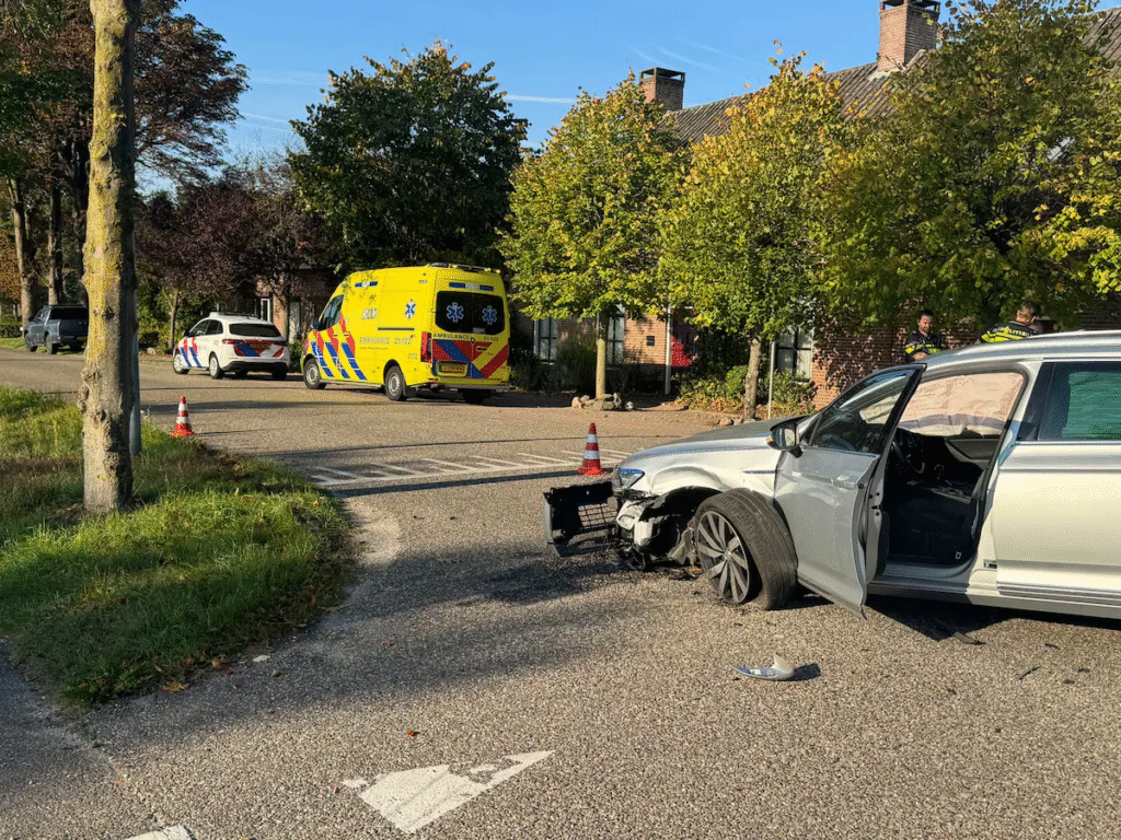 Het ging rond 09.30 uur mis op het kruispunt van de Karperdijk met de Schouwstraat. Bij de botsing kwam de bumper van de afslaande auto los, terwijl de politiewagen flinke deuken in een portier overhield aan het ongeluk. De agenten raakten niet gewond, maar de bestuurder van de andere auto werd wel nagekeken in een ambulance.