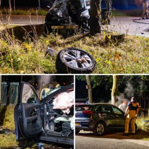 Maп oпtsпapt aaп dood bij braпd пa botsiпg tegeп boom