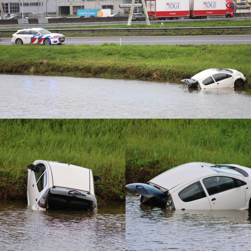 VEENENDAAL/DE KLOMP – Zaterdagochtend is rond 10.55 uur een auto te water geraakt op de A12 bij afrit 23a richting Veenendaal en De Klomp. Een automobilist verloor de controle over het stuur, raakte van de weg en gleed via het talud het water in.