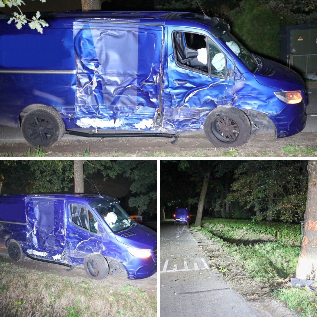 In de nacht van vrijdag op zaterdag is de bestuurder van een bestelbus hard tegen een boom gebotst aan de Stoutenburgerweg in Terschuur. Het ongeval gebeurde kort na 00.10 uur, net na de kruising met de Kallenbroekerweg.
