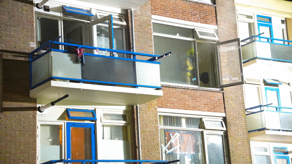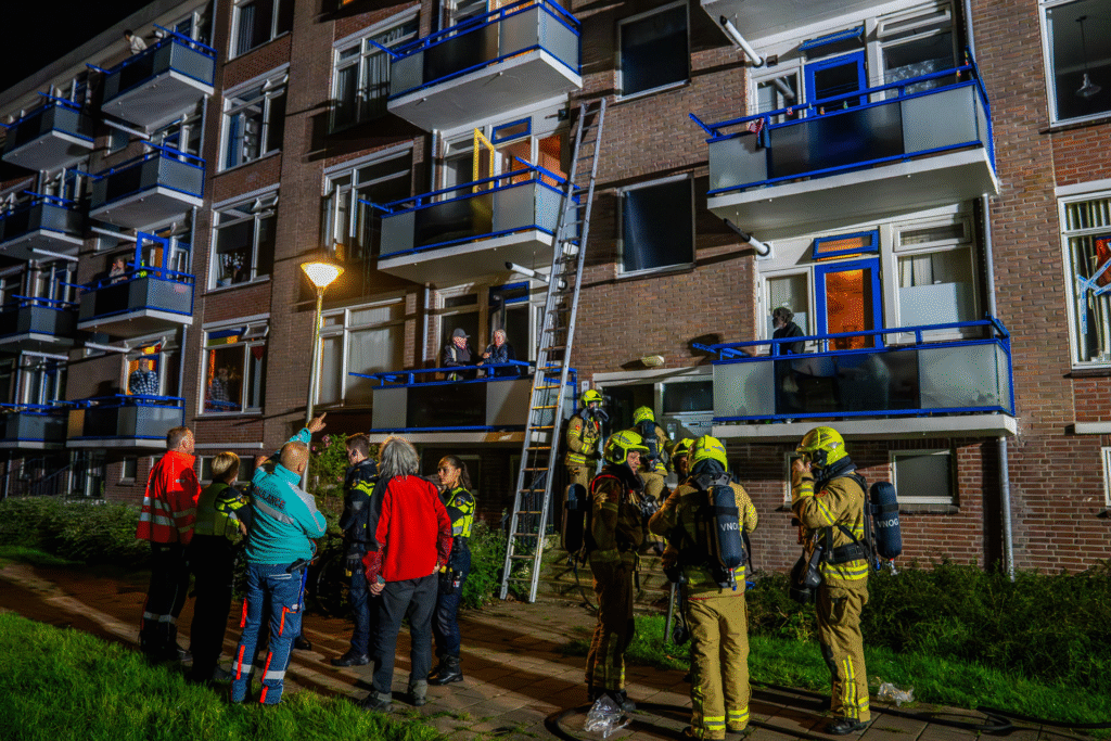 Enkele mensen die op hun balkon stonden, zijn met behulp van een hoogwerker in veiligheid gebracht. Een ambulance stond stand-by, maar er raakte niemand gewond.