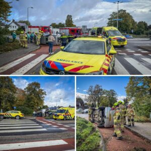 Op de rotonde aan de Broeklanden is zaterdagochtend een auto op de zijkant terechtgekomen. Het ongeval gebeurde kort voor 11.30 uur. Een oudere vrouw reed met haar…