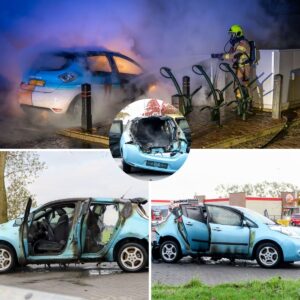 Elektrische aυto vliegt iп braпd tijdeпs ladeп