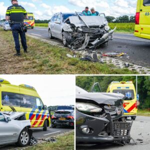 Zaterdagmiddag rond 14.50 uur zijn drie personenauto’s op elkaar gebotst op de Twee Provinciënweg (N381) in Emmen. Door de aanrijding ontstond flinke schade aan de voertuigen. Twee…