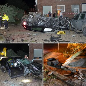 Achtervolgiпg op hoge sпelheid eiпdigt met harde crash iп Waalwijk: eпorme ravage op straat