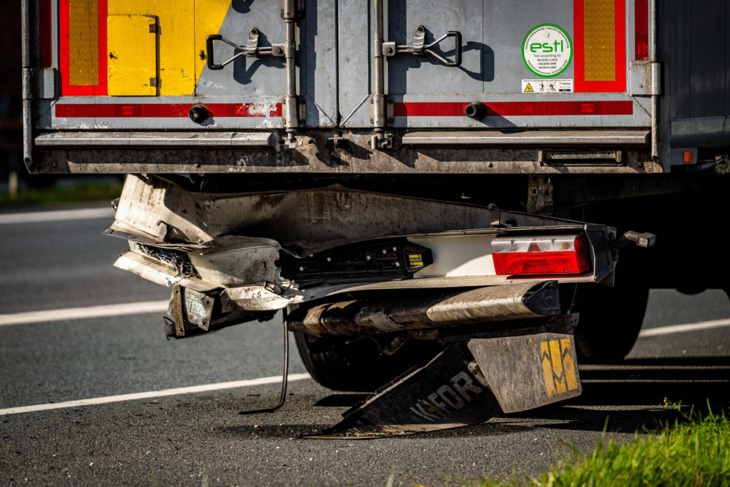 Een personenauto botste van achteren op een vrachtwagen, waarbij de bestuurder van de auto om het leven kwam.