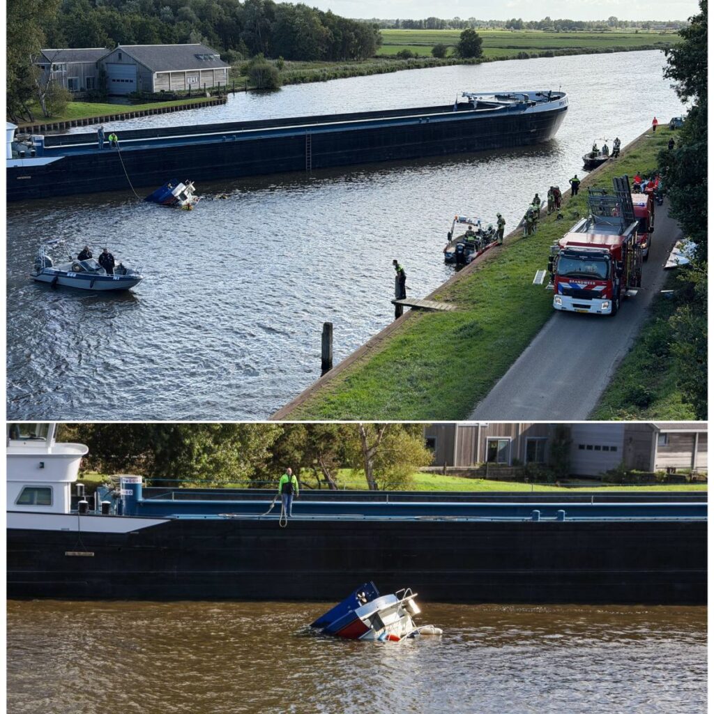Rond 14.30 uur botsten een binnenvaartschip en een plezierjacht vlak bij de Fonejachtbrug door nog onbekende oorzaak. Volgens een ooggetuige voer het binnenvaartschip van 86 meter lang achterop het plezierjacht. De twee opvarenden belandden in het water.