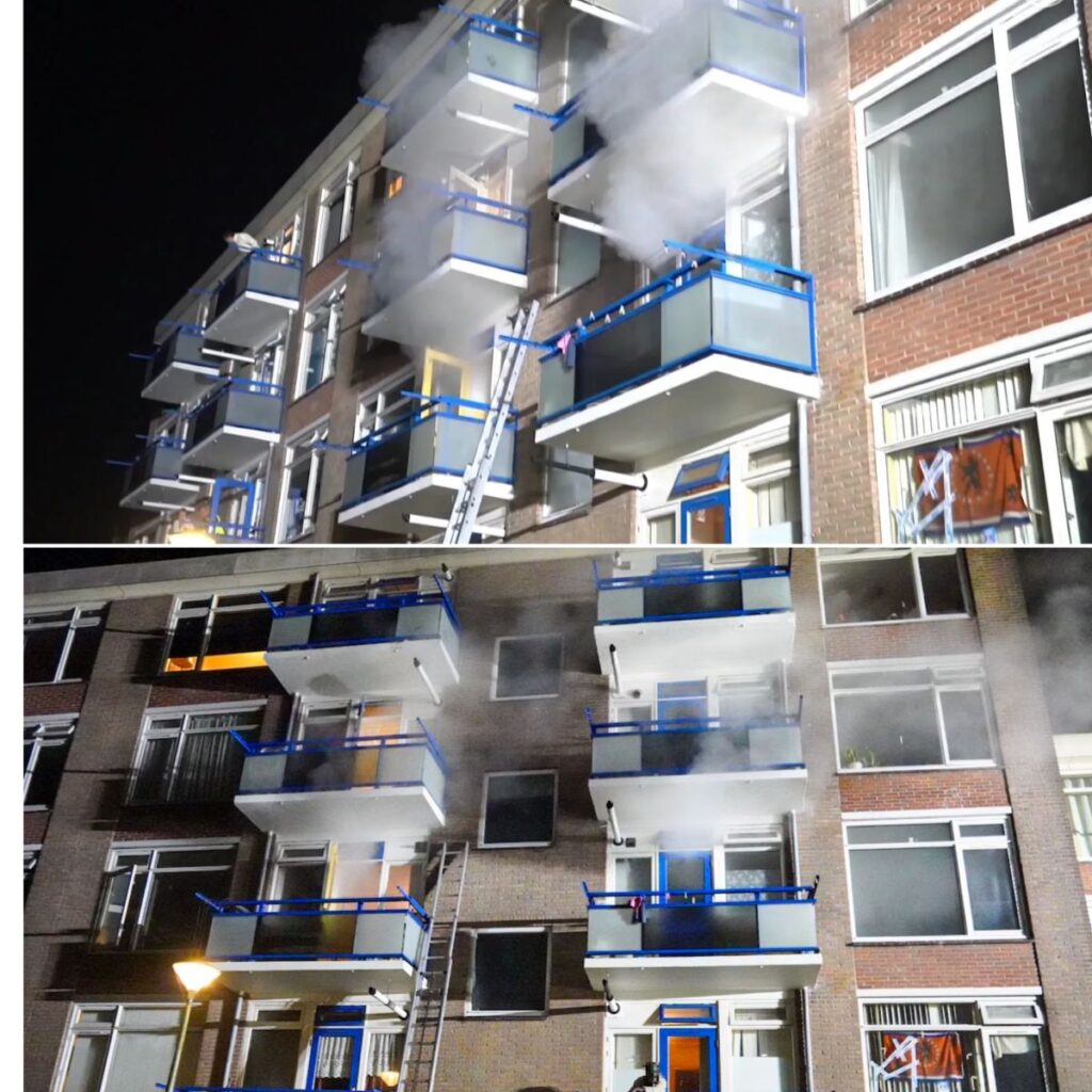 Het vuur ontstond zaterdag rond 23.50 uur in een berging. Door de felle rookontwikkeling trok de rook via het portiek meerdere woningen in. De brandweer rukte met drie blusvoertuigen en een hoogwerker uit om de brand onder controle te krijgen.
