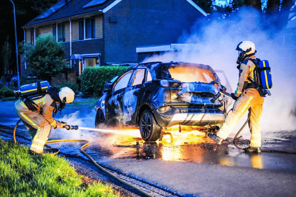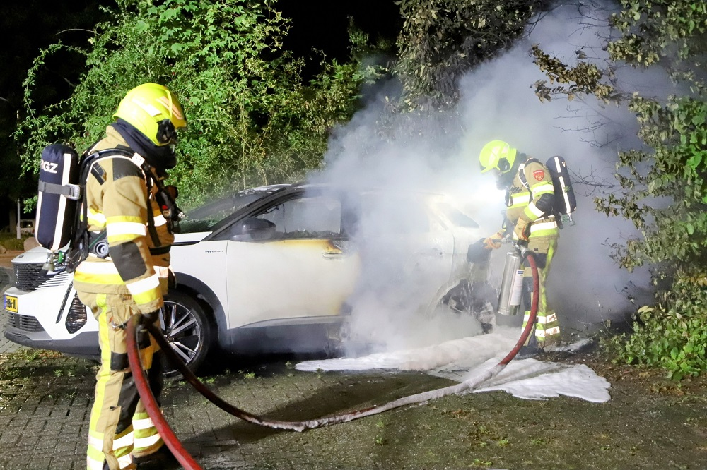 Omdat het een hybride auto betrof, zette de brandweer schuim in om het vuur te blussen.