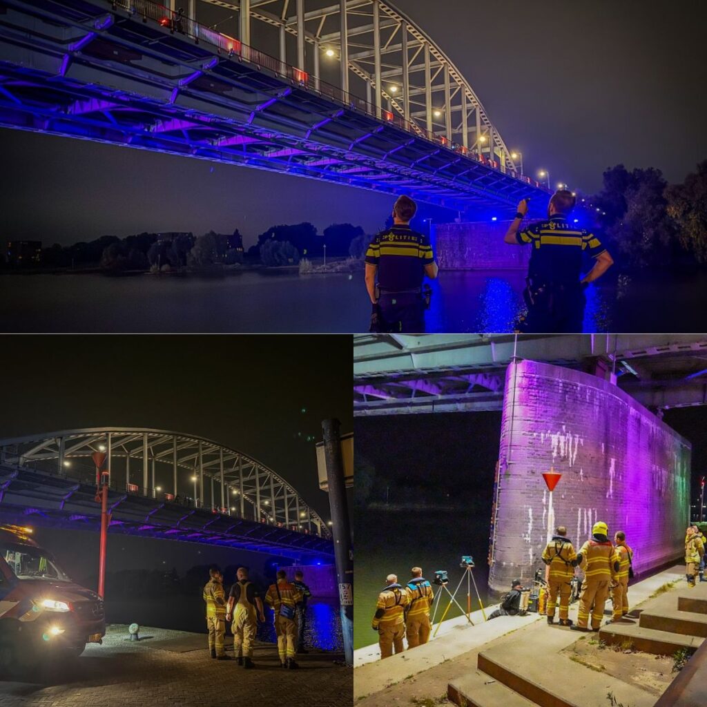 De zoektocht concentreerde zich onder de John Frostbrug, waar een jas in het water werd gevonden. Brandweerboten en het droneteam uit Nijmegen kamden het gebied uit.