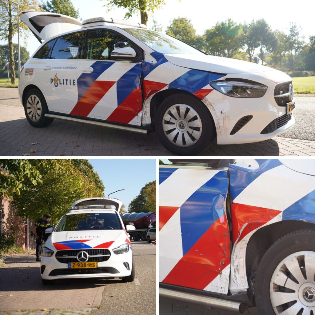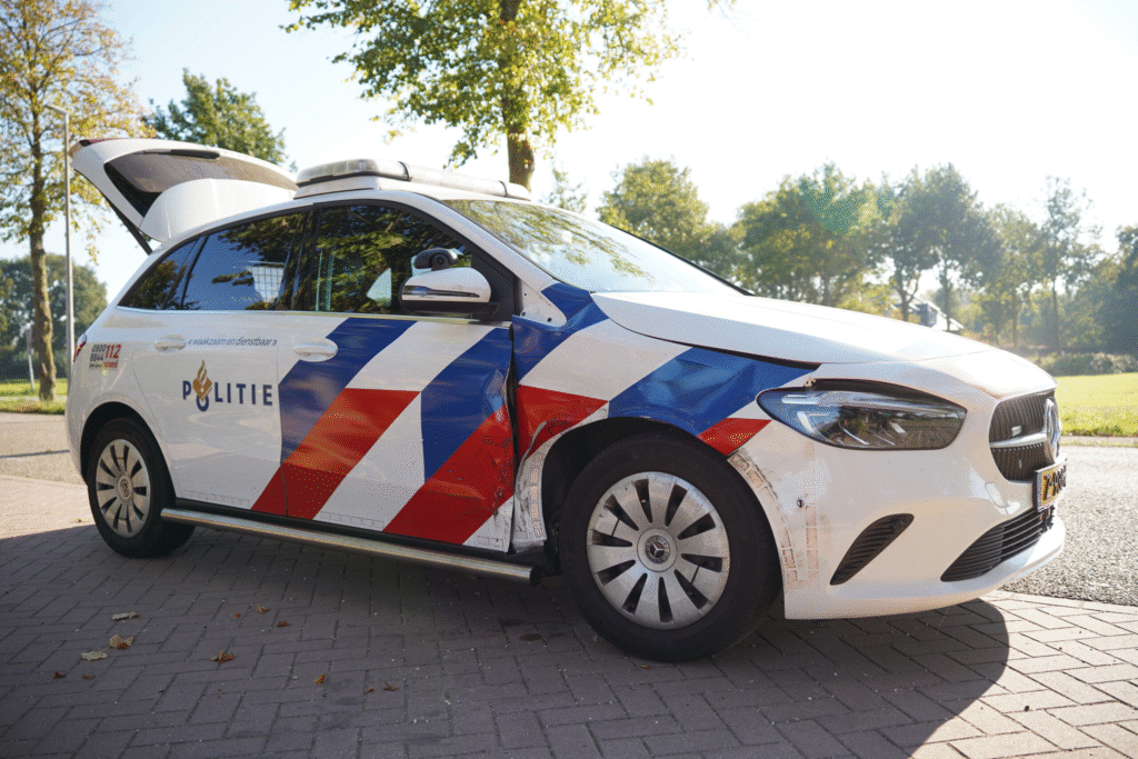 Door de klap raakte de bumper van de personenauto los, terwijl de politiewagen aanzienlijke schade opliep aan een portier. Beide voertuigen moesten worden weggesleept.