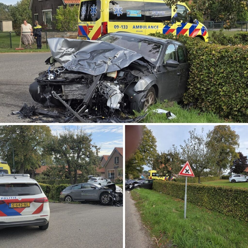 Op de kruising van de Friesesteeg met de Weteringssteeg in Rhenen heeft zich een flinke aanrijding voorgedaan tussen twee personenauto’s.