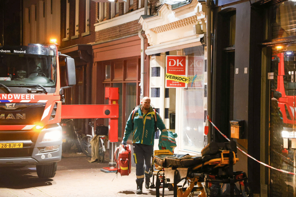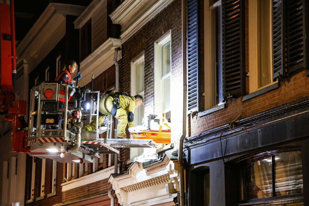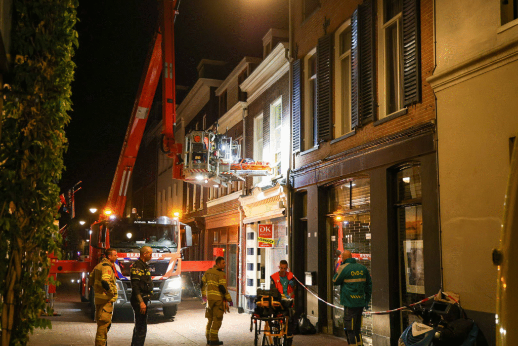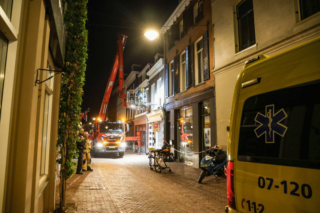 Het slachtoffer werd zwaargewond in een woning aangetroffen en met behulp van een hoogwerker naar buiten gebracht.