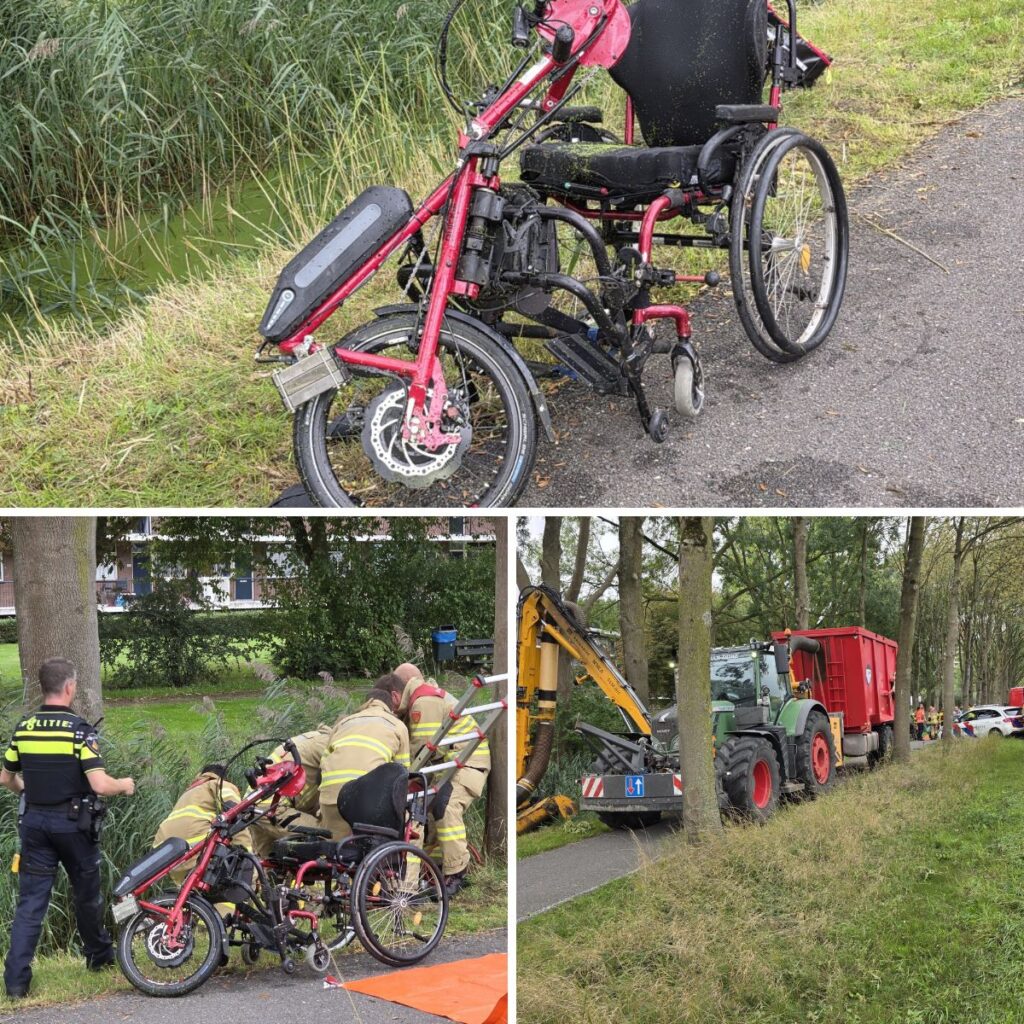 De man kwam op het fietspad een tractor tegen die bezig was met maaiwerkzaamheden. Bij de poging om te keren ging het mis: hij reed te ver door en belandde in het water. Een meisje die het ongeluk zag gebeuren, waarschuwde direct de tractorbestuurder. Die aarzelde niet en sprong het water in om hulp te bieden.