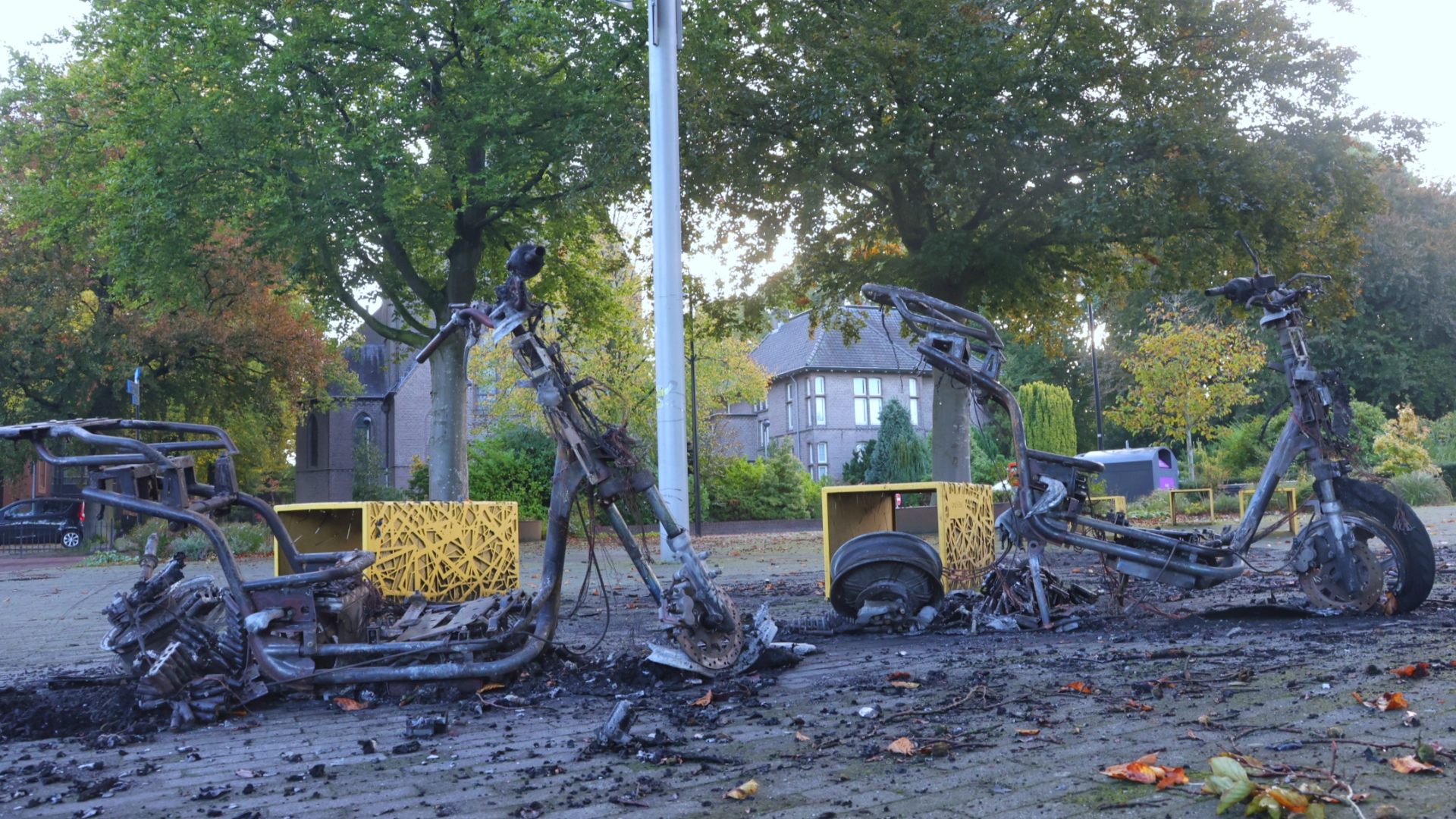 De brandweer is ter plaatse gekomen, maar de scooters waren niet meer te redden. Het is onbekend hoe de scooters in brand zijn geraakt.