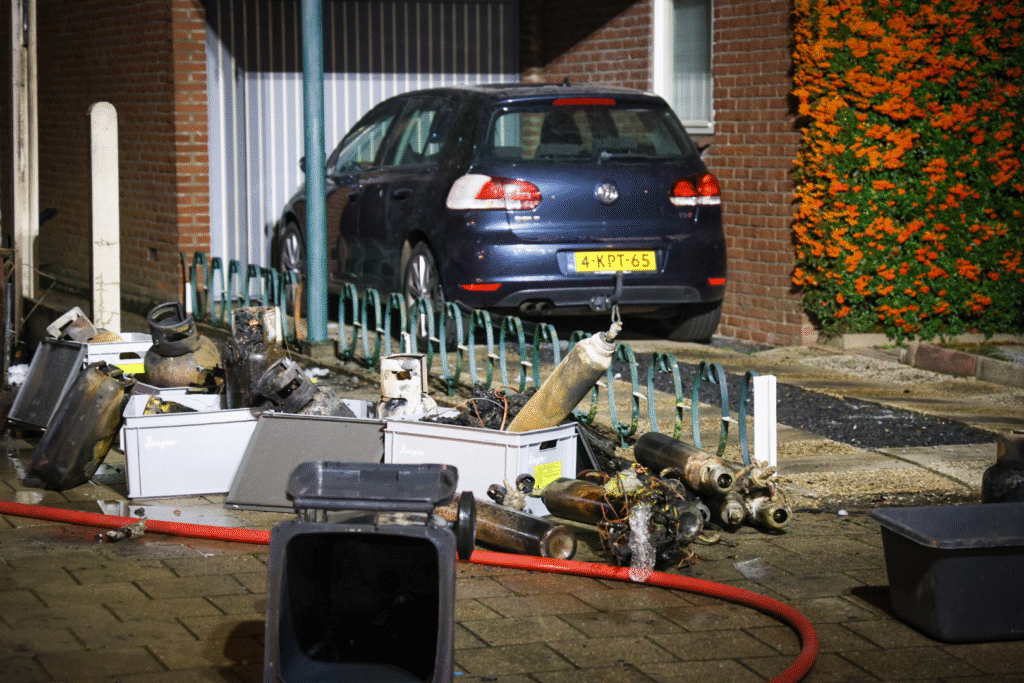 In de schuur lagen vijftien gasflessen en meerdere kannen brandstof. De brandweer haalde deze uit het pand en legde één acetyleenfles in een nabijgelegen sloot, waar deze 24 uur gekoeld moet worden. Vanwege de gevaarlijke situatie werden omstanders weggestuurd en omliggende woningen tijdelijk ontruimd.