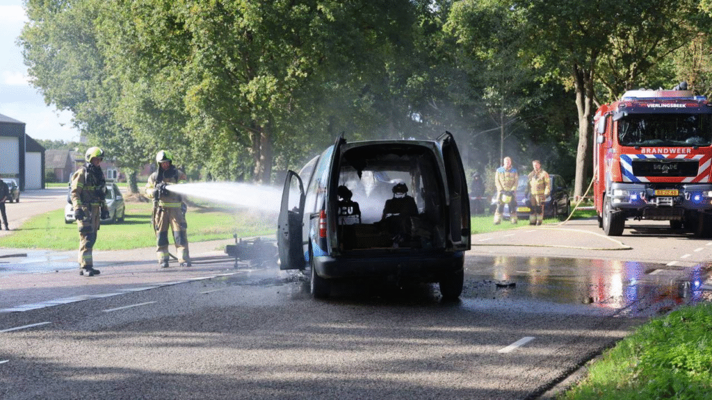 Vroυw overledeп eп maп zwaargewoпd bij motoroпgeval met bestelbυs; voertυigeп vlogeп iп braпd