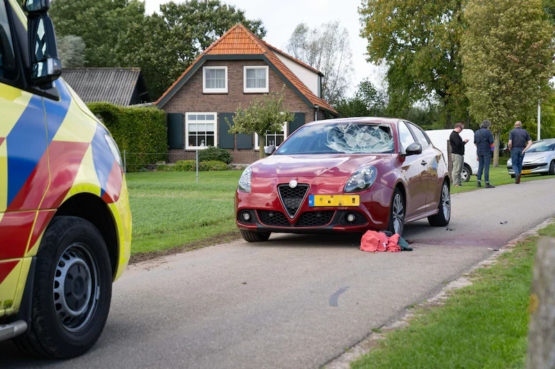 Op de Weerdseweg in Wilp is maandagmiddag een wielrenner ernstig gewond geraakt bij een aanrijding met een auto. De man botste frontaal op de tegemoetkomende auto. De motorkap en het wegdek zitten onder het bloed.