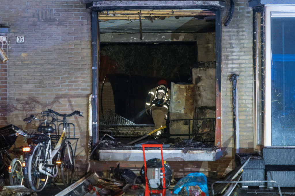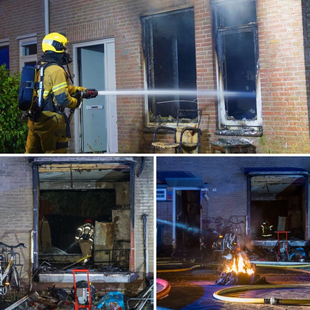 Een woning aan de Gerardt Burghoutweg in Diemen is donderdagnacht volledig uitgebrand, de bewoners wisten zichzelf te redden. De kozijnen van de woning waren door de brand eruit geblazen.